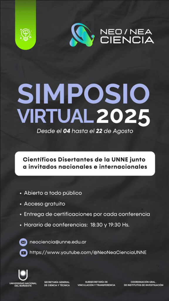 4 agosto, 2025 – 22 agosto, 2025 @ 6:00 pm – 8:00 pm – 📣 Te invitamos a participar del Simposio Virtual 2025 Nea Ciencia 📅 Se llevará a cabo del 4 al 22 de agosto 👉Se desarrollará en modalidad virtual y contará con la participación de más de 20 científicos, entre destacados investigadores de nuestra casa de estudios e invitados nacionales e internacionales, que disertarán sobre diversas temáticas […]