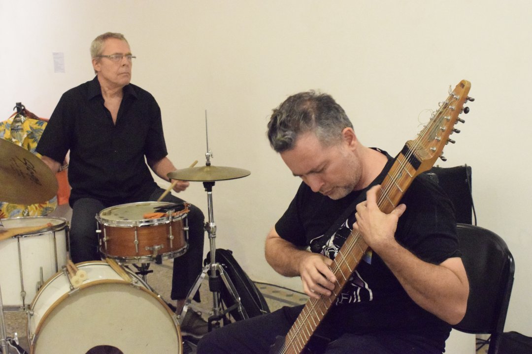 Había mucho sol por esos días en Corrientes. Los músicos llegaron temprano. Osvaldo arribó con su stick y luego fue a buscar un amplificador. Jorge desplegó batería en el centro de la sala. La charlas se suceden entre risas mientas acomodan los instrumentos. En el Centro Cultural Universitario era una semana con una agenda completa de actividades. Distintos espacios de formación realizaban muestras y exposiciones.